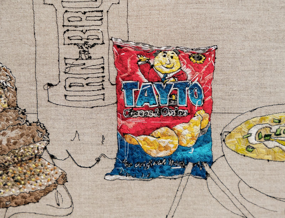 Ciara O'Connor, By Numbers III, 61 x 52 x 2 cm, detail, freemotion embroidery and hand stitch on linen, 2025.