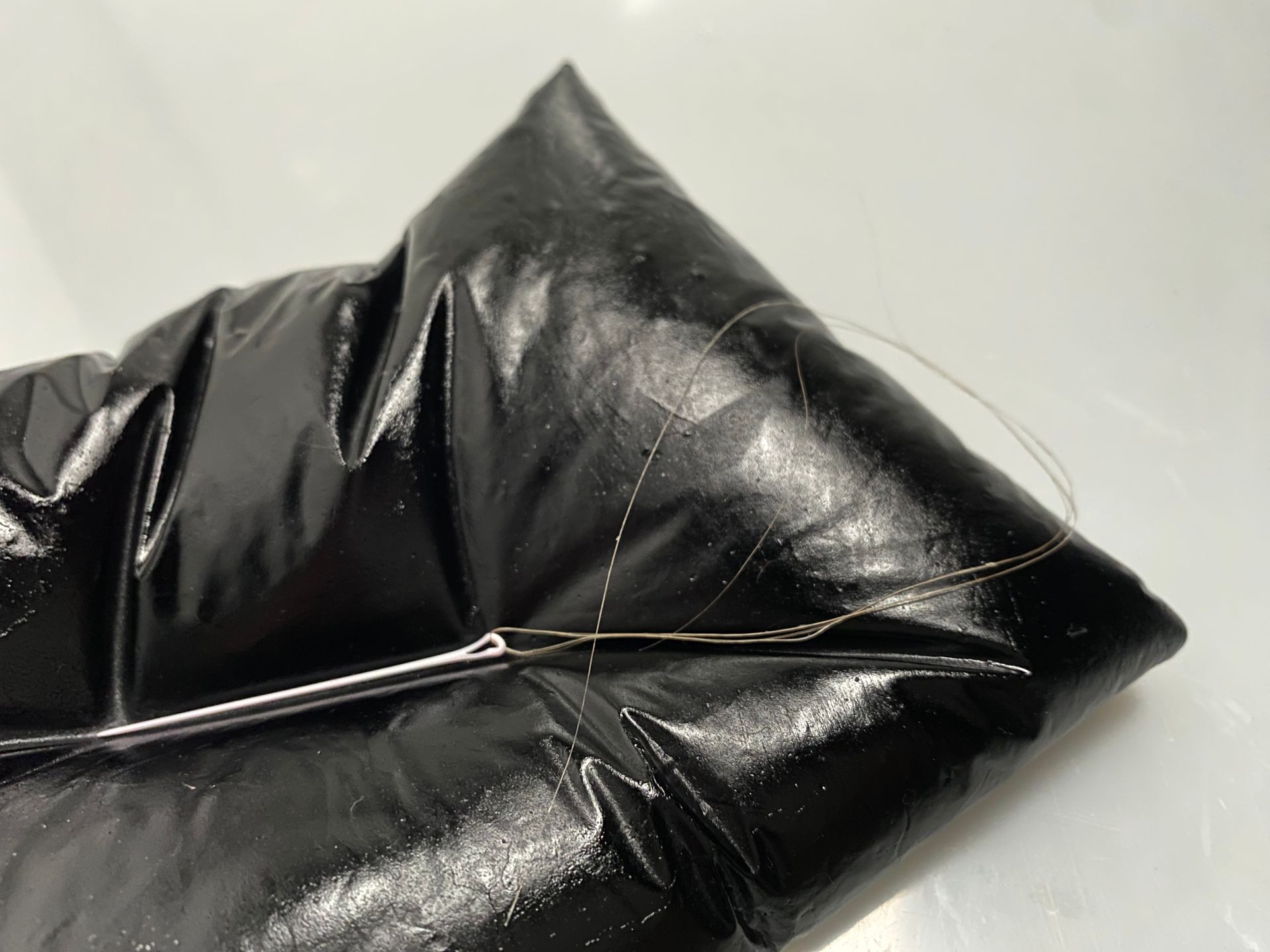 Resting, 2024, cast glass, flame-worked glass, human hair, h4 x w15 x d15 cm