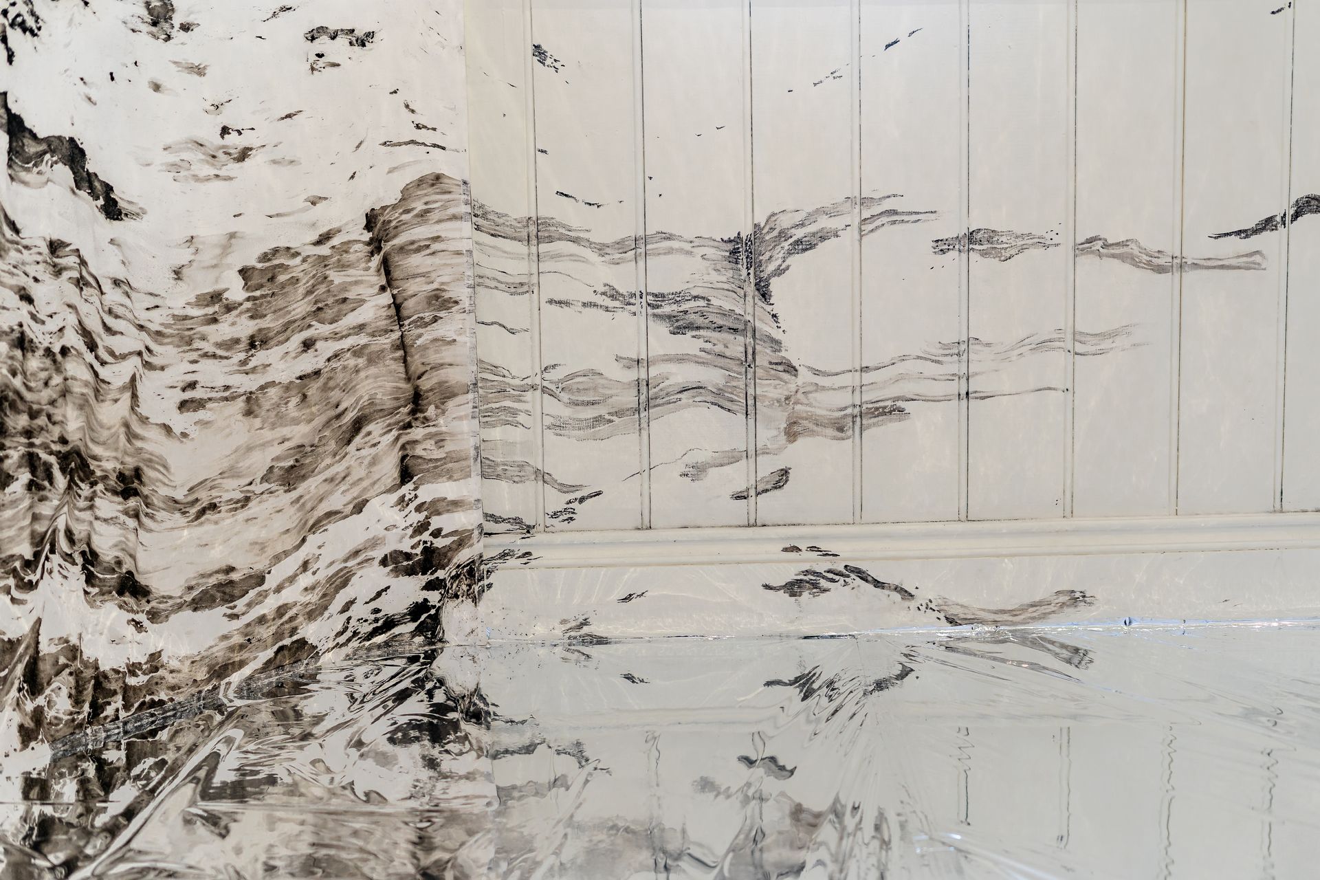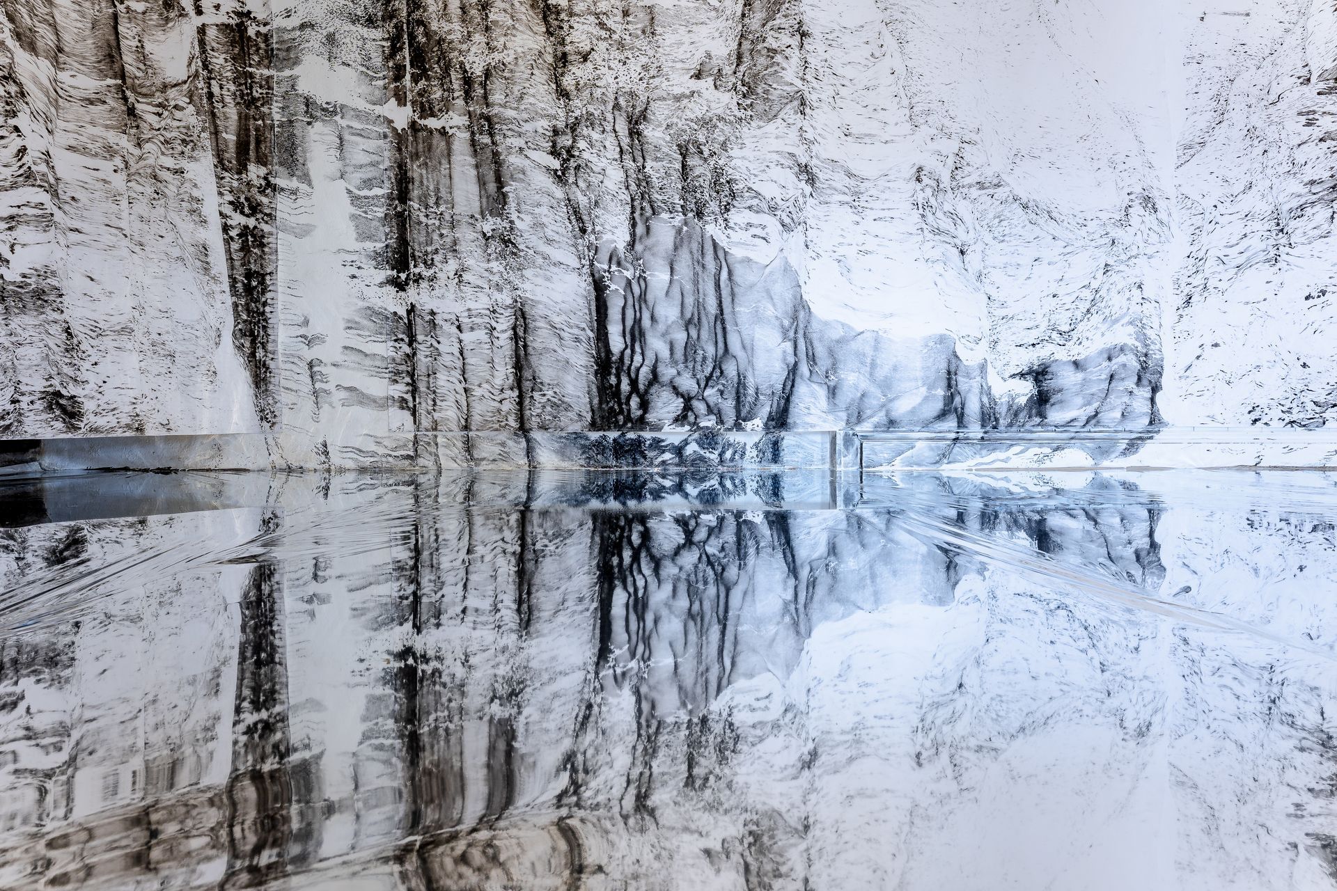 Rather than depicting nature, Borowa seeks to collaborate with it, exploring her relationship with the natural world. The process is central to her inquiry, seen as lessons in humility, openness, attentiveness, mindfulness, patience, determination, and forgiveness. Dorota works with water as an active collaborator in the creation of an image. Mixing it with oil paint, watercolour, or ink, she allows the materials to interact organically on paper or board. At times, she sets up physical conditions that allow water to shape the work – such as filling a pool, or building a raft and installing it along the shore. Different states of water – rain, ice, seawater, and recently glacier water – collected from various places form a unique vocabulary in her work. Dorota's site-specific installation was introduced by a conversation with broadcaster and art critic Cristín Leach: a recording of which can be viewed here . . .