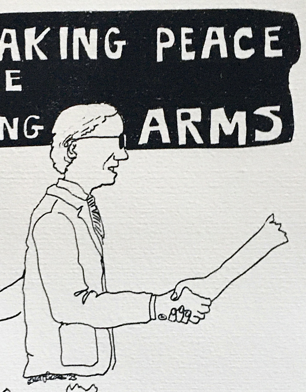 2023, unframed one-, two- or three-colour screenprint, 35 x 26 cm on watermarked 285 gsm Fabriano with deckled edge at foot. signed edition of 18 hand-printed at Grilse Gallery, €95 with 100% of sales to Médecins Sans Frontières. Packed and mailed in a rigid cardboard tube €10 in Ireland, other countries on request.