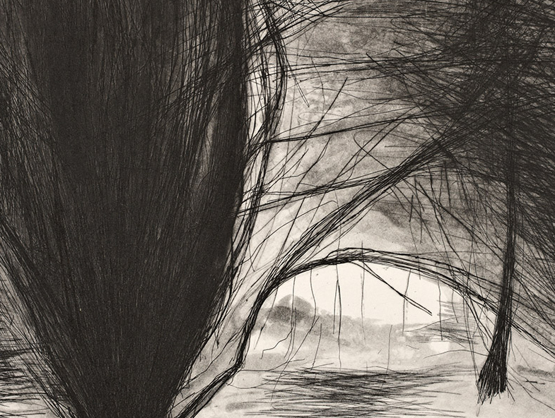 Etching, image size 28 x 38 cm, paper size 53 x 58 cm, unframed signed 22/ed.25. From the Yew Tree and Forest series based on the 17th-century Yew Tree Walk at Castle Leslie Estate, Blaslough, Co. Monaghan. Packed & mailed in a rigid cardboard tube €10 in Ireland, other countries on request.